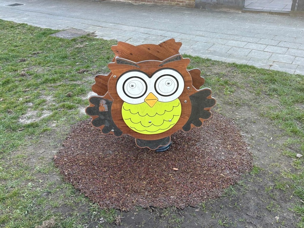 Speeltoestel Roxane (2)Speeltoestel Roxane (4)Speeltoestel Roxane (5)Speeltoestel Roxane (6)Veerfiguur uil (1)Draaischijf met ring (1)